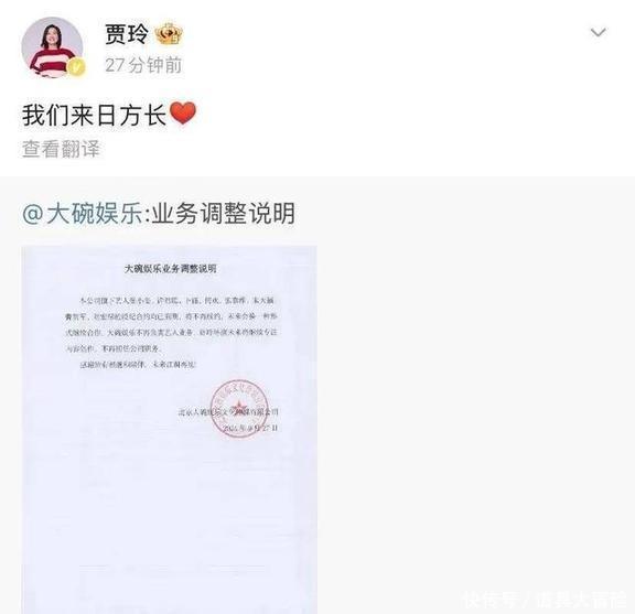 看来她是真不想再过以前那种日子了。除了不上综艺,贾玲最近两年的其他动作也能说明问题。2024年9月,她创办的大碗娱乐公司对外宣布,张小斐这些旗下艺人的合约快到期了,公司不打算跟他们续约了。包括贾玲自己在内的不少人都转发了这个消息,还配了句“来日方长”。