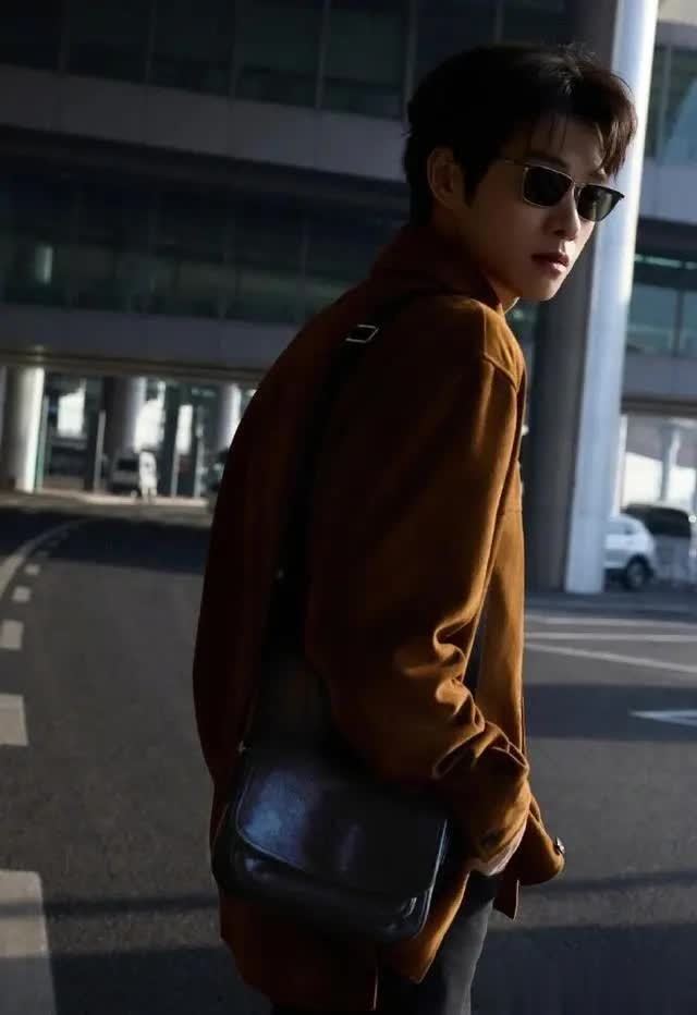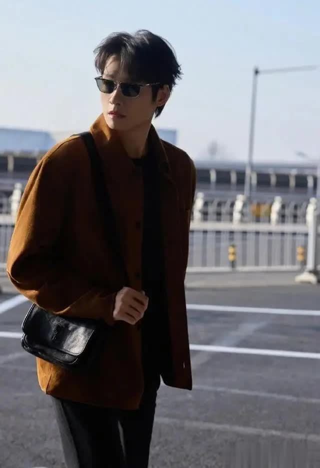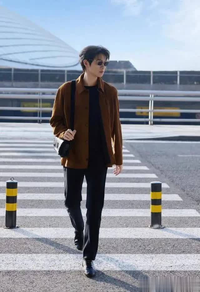 更有趣的是细节呼应。外套焦糖棕与机场冷调金属形成暖冷对比,却和谐如秋日焦糖拿铁;偶尔露出的黑色长裤线条利落,让整体造型更显干练,完全契合“松弛型格”定位。路人镜头下的生图都充满氛围感,粉丝赞其为“理想中的男装周出发造型”。