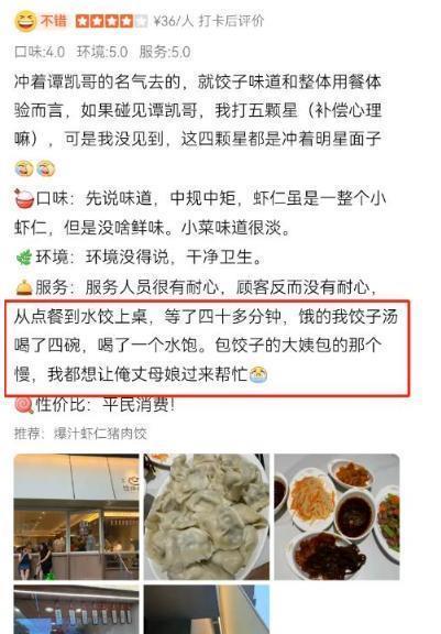 因一直坚持手工现包,工作人员包饺子速度有限,导致出餐很慢。不少顾客由于等待时间太久,在网上给出差评,直接表达内心不满。谭凯了解情况后,不回避问题,也不找借口推脱,亲自开直播,向顾客诚恳道歉,并详细说明了出餐慢的原因。