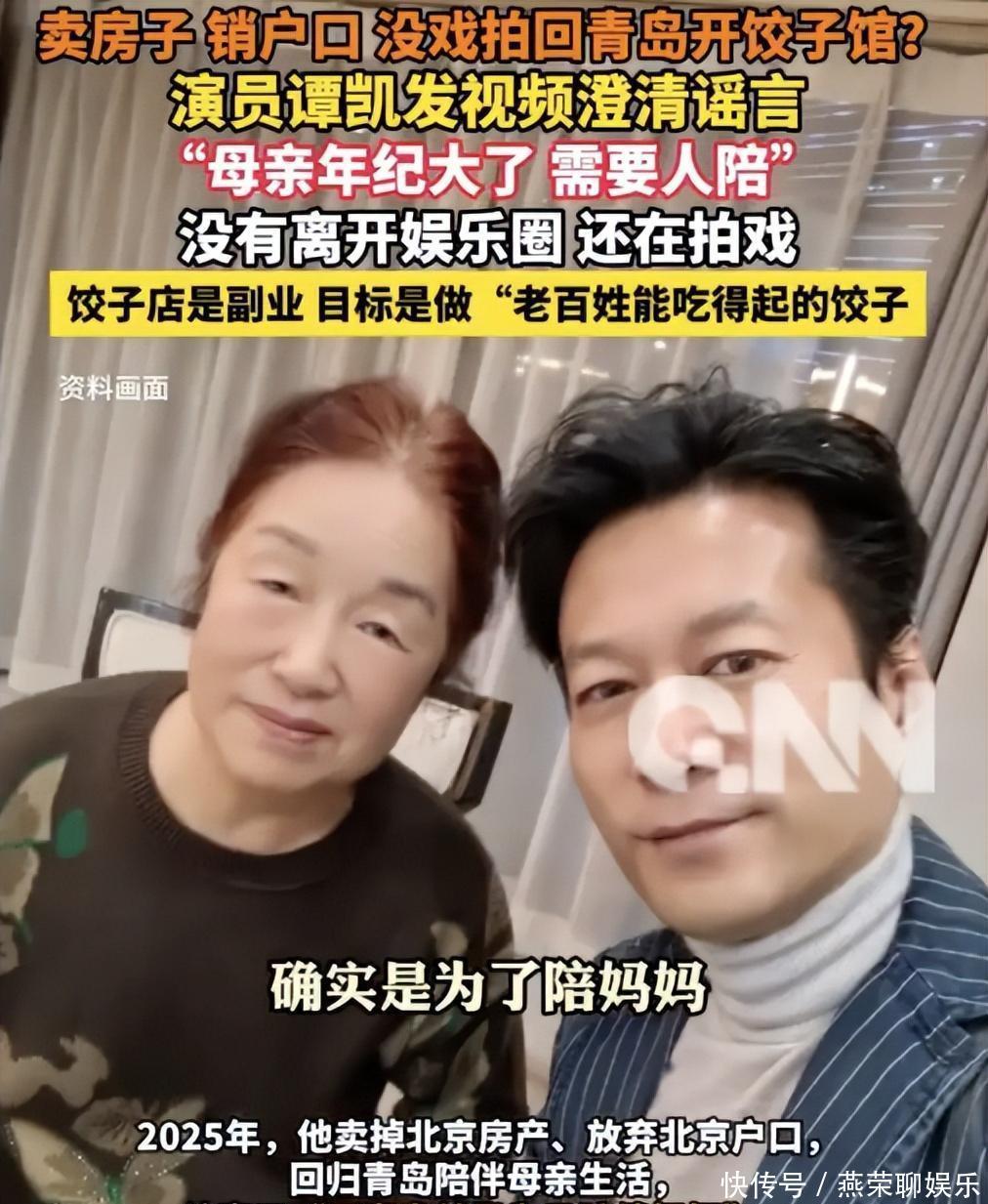 后来,他干脆把北京的房子卖掉,搬回青岛老家住了。他这样做并非是“无戏可拍”“走投无路”,只是想守在母亲身边,好好尽孝。网上传言他“注销户口”,纯属无稽之谈,荒谬至极。面对这些离谱至极的谣言,谭凯特意发布了一段视频来澄清。他的语气里没有一丝愤怒,只有藏都藏不住的无奈。他称,外界热衷于议论他卖房之事,他还能理解,但造谣他注销户口,就太荒诞了。
