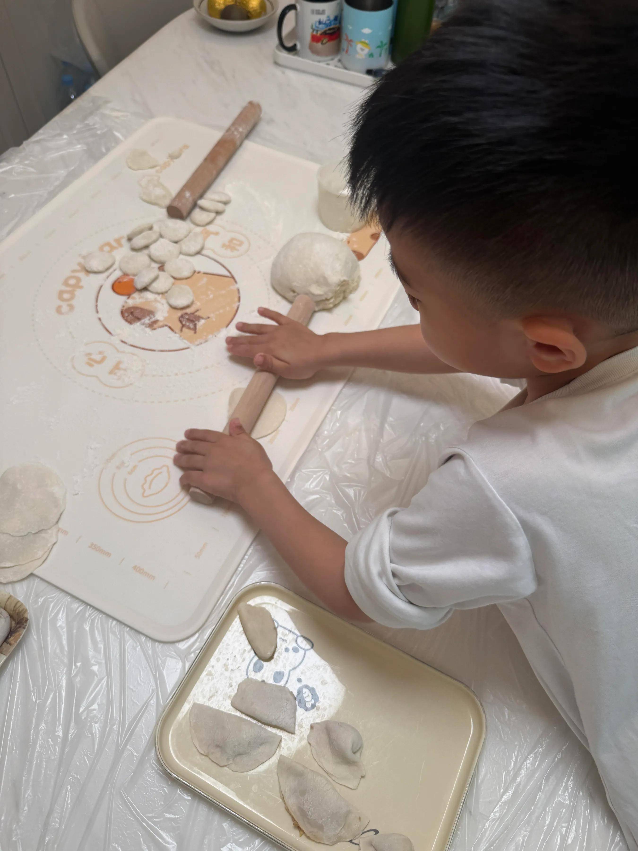年夜饭的饺子由马龙的两个儿子包制,他们擀饺子皮的模样有模有样,孩子已然长大。